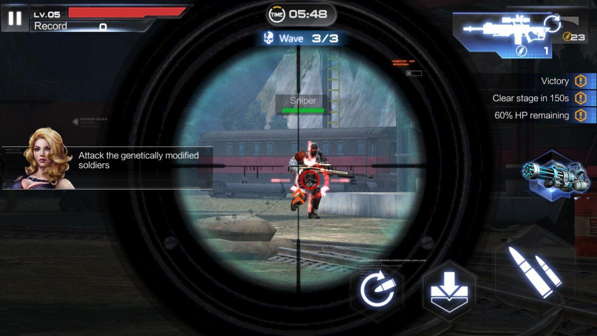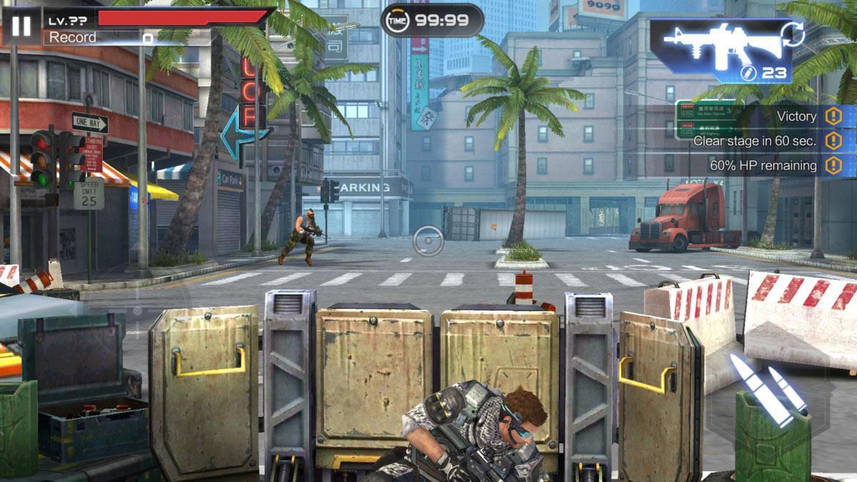 The gameplay of Fusion War offers some of the most enjoyable moments that we’ve ever experienced in mobile based shooter games. The game isn’t exactly like a traditional shooting game since you’ll only be shooting from cover to cover and won’t actually get to move through the entire level. However, the polished shooting mechanics coupled with the top notch enemy and boss designs make sure that players don’t have anything to complain about as they play through the game. The objective in most levels is to either take out a priority target or clear waves upon waves of enemies and although this might sound like it would get repetitive after a while, this actually isn’t the case thanks to the solid level design.