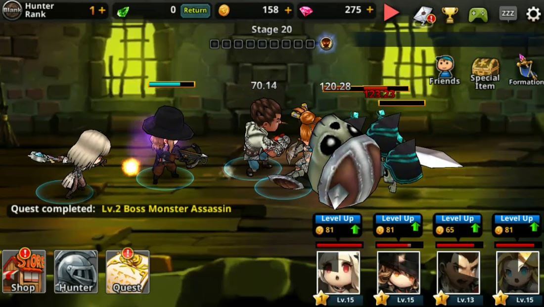 Unfortunately, if you’re looking for something new and fresh, Dungeon Hero Breakers isn’t it. However, it does well with what it has. Your hunters will fight monsters and it’s your job to use the coins they collect along the way to level them up top put them in tip-top shape against future opponents. Apart from this, the upgrade system is fairly robust though straightforward. All you have to do is wait until they pick up certain materials and have enough gold to upgrade their skills and gear.