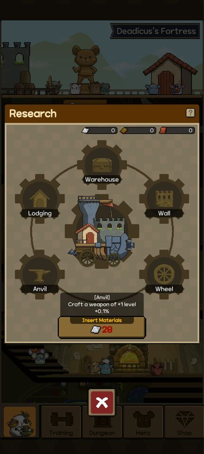 In case you’ve handled idle adventure titles before, expect to manage every opportunity your furball army gets to power up. There is a lot of merging you’re going to do, the most obvious one being the weapons your rodent warriors use. You will forge the lowest-leveled weapons your smithy can produce, take two of them to create a higher-tier weapon, and keep at it until you get the best possible ones you can have at a given time.