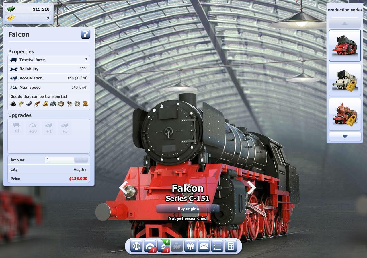 Buy new trains and upgrade your old ones for faster deliveries and larger profits.